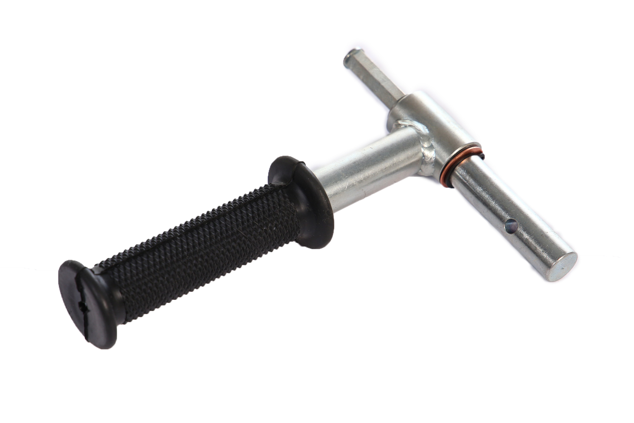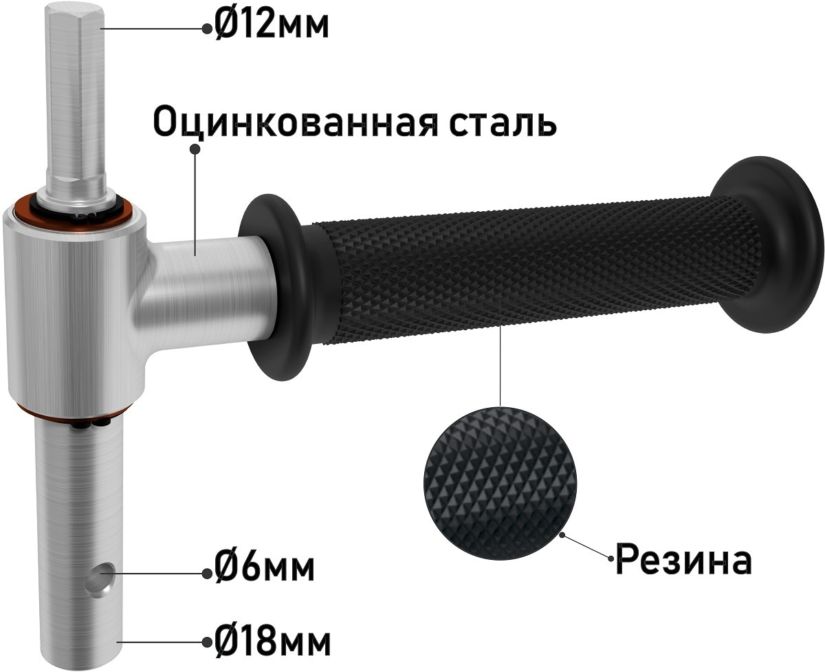 Конструкция адаптера имеет специальный упор для защиты от случайного выпадения и шестигранную рабочую поверхность, для зажима его в патроне шуруповерта, которая препятствует прокручиванию шнека в нём. Адаптер с резиновой ручкой очень удобен в использовании и легко устанавливается на ледобур, одной рукой Вы держите шуруповерт, а другой ручку адаптера.