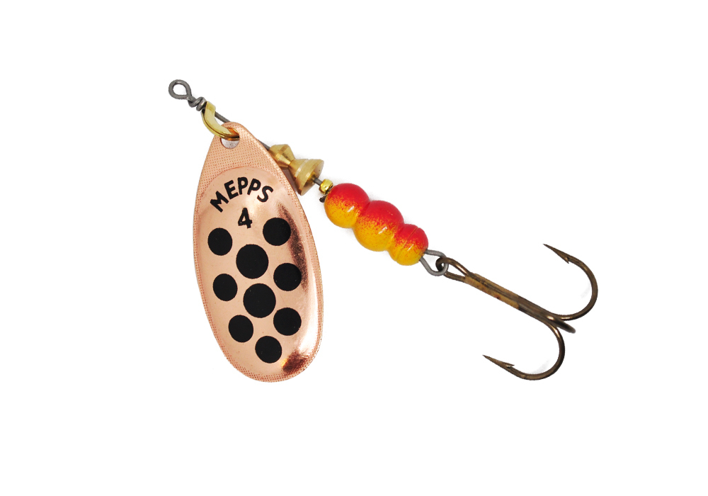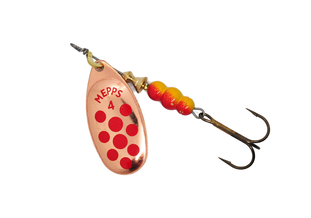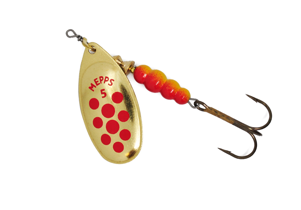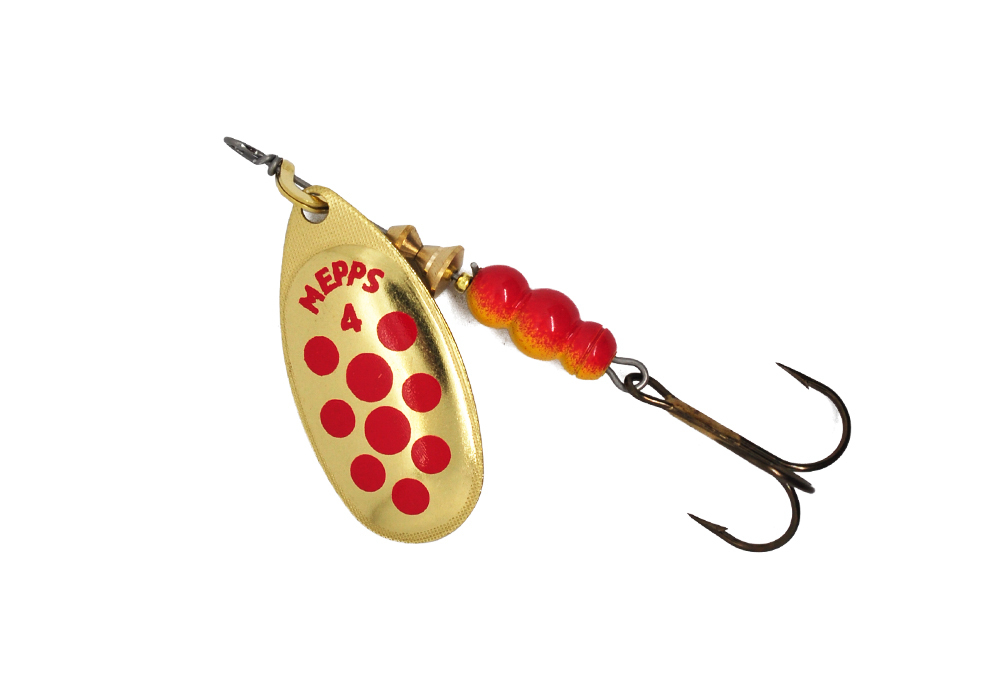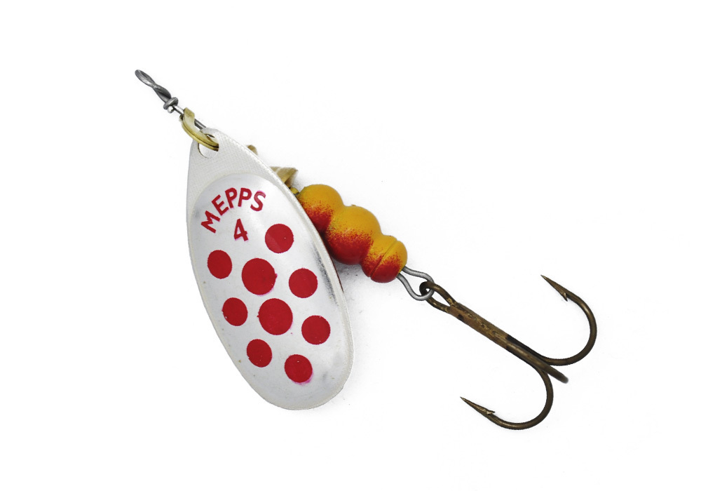 На лепестки MEPPS AGLIA DECOREE нанесены красные и черные точки. Опытные рыболовы, признавая полезность этой окраски, разделяются во мнениях о причинах ее эффективности. Одни считают, что точки на лепестке повышают контрастность окраски, тем самым провоцируя атаку рыбы. По их мнению, доказательством этого служит уловистость AGLIA DECOREE в мутной воде. Другие — наоборот придерживаются мнения, что эти же точки, при вращении сливаясь в мягкие линии, делают окраску спокойнее, что меньше настораживает рыбу и придает приманке внешность насекомого. Недаром MEPPS производит некрупные (№1, 2, 3) размеры данной модели. Лепестки AGLIA DECOREE имеют серебряную, золотую и медную окраски. Вы всегда имеете возможность подобрать наилучшую комбинацию для ваших условий. При вращении угол отклонения лепестка от оси составляет 60°