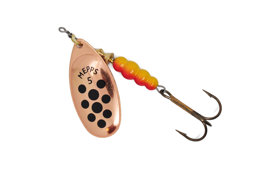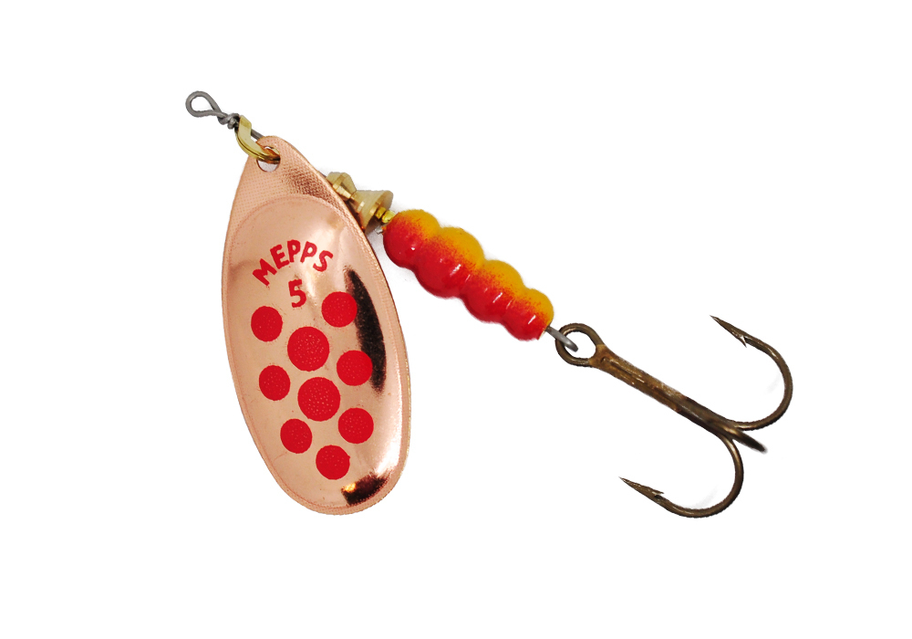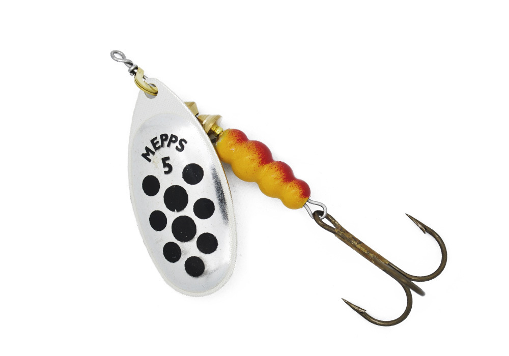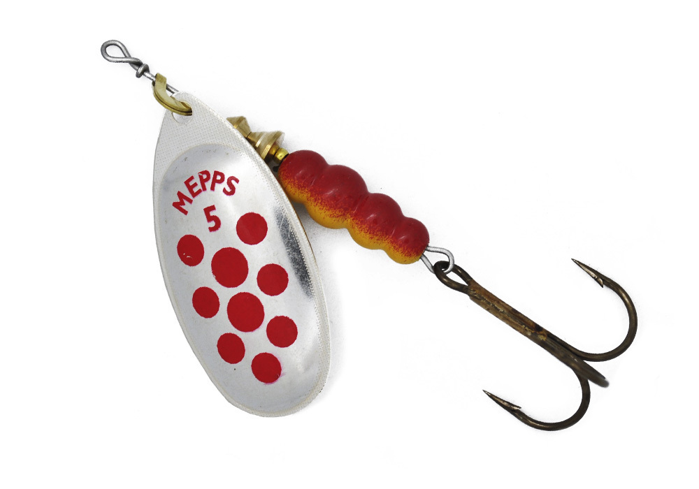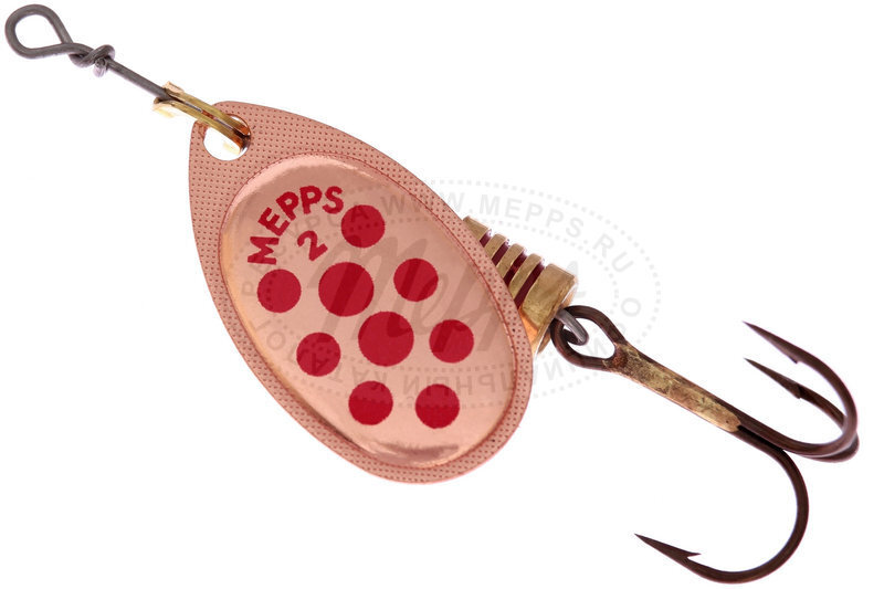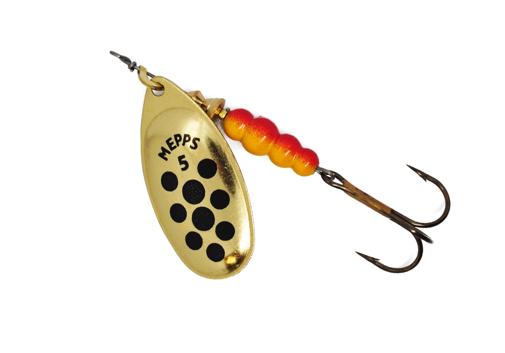 На лепестки MEPPS AGLIA DECOREE нанесены красные и черные точки. Опытные рыболовы, признавая полезность этой окраски, разделяются во мнениях о причинах ее эффективности. Одни считают, что точки на лепестке повышают контрастность окраски, тем самым провоцируя атаку рыбы. По их мнению, доказательством этого служит уловистость AGLIA DECOREE в мутной воде. Другие — наоборот придерживаются мнения, что эти же точки, при вращении сливаясь в мягкие линии, делают окраску спокойнее, что меньше настораживает рыбу и придает приманке внешность насекомого. Недаром MEPPS производит некрупные (№1, 2, 3) размеры данной модели. Лепестки AGLIA DECOREE имеют серебряную, золотую и медную окраски. Вы всегда имеете возможность подобрать наилучшую комбинацию для ваших условий. При вращении угол отклонения лепестка от оси составляет 60°