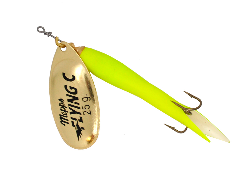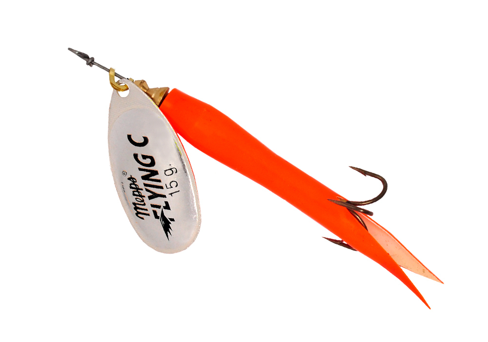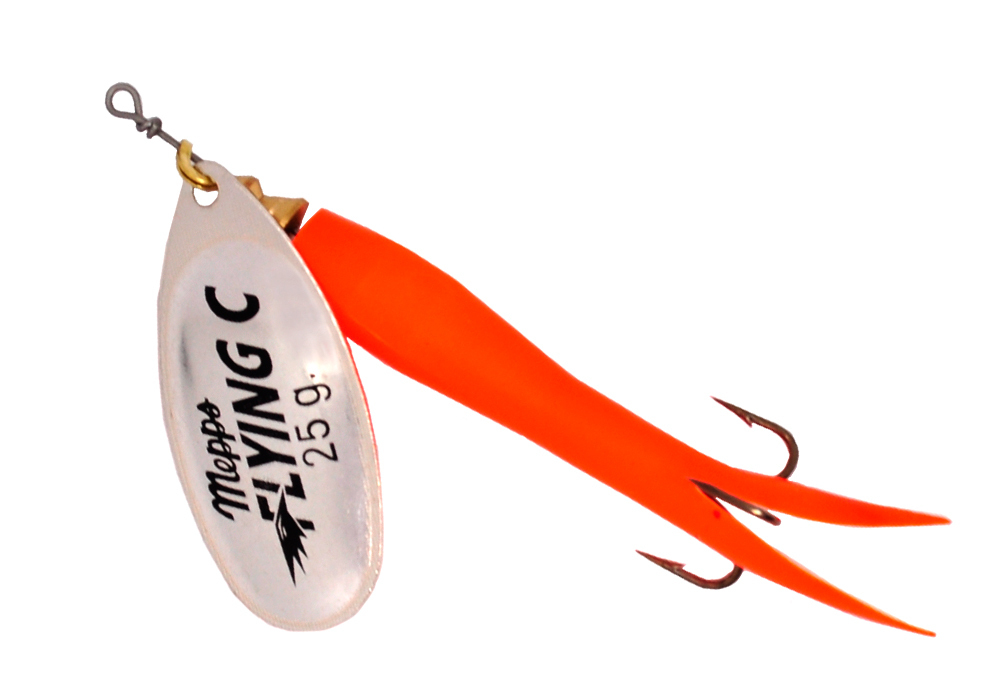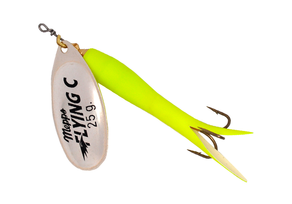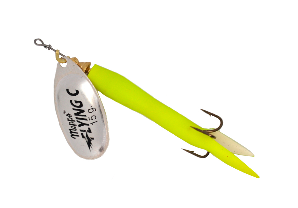 Mepps AGLIA FLYING С с утяжеленным сердечником и при этом с небольшим размером лепестка. Подойдут для применения на сильном течении, поскольку полностью сохраняют свою игру в тяжёлых условиях. Также блесна AGLIA FLYING С может применяться на глубинных участках.