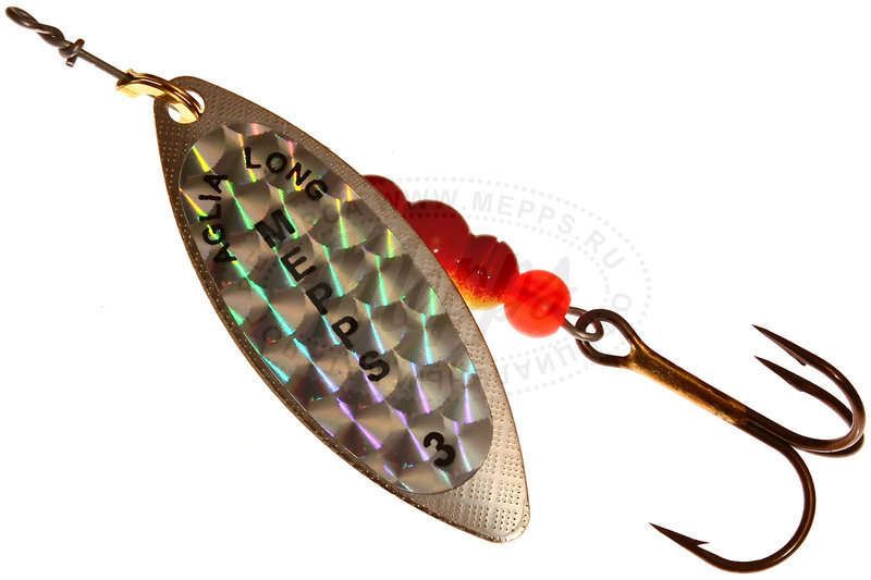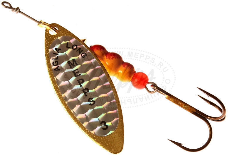 Название приманки обусловлено продолговатой формой лепестка, имеющего отклонение от оси вращения 30° и небольшое лобовое сопротивление. Справедливости ради, следует отметить, что оно несколько изменяется, в зависимости от скорости проводки. Именно эта особенность, то есть очень широкий диапазон допустимой скорости движения, при которой сохраняется безукоризненная работа блесны, и есть главный секрет рекордной уловистости AGLIA LONG. Опытные рыболовы знают, насколько важно приноровиться к блесне, нащупав наиболее выгодный режим ее проводки. Здесь AGLIA LONG — вне конкуренции, она прощает значительные ошибки, совершаемые новичками. Благодаря небольшой «упористости» блесны всех размеров пригодны для ловли с проводкой против течения. В то же время и на озере, где часто требуется медленное движение блесны, MEPPS AGLIA LONG обеспечит вам превосходную рыбалку.