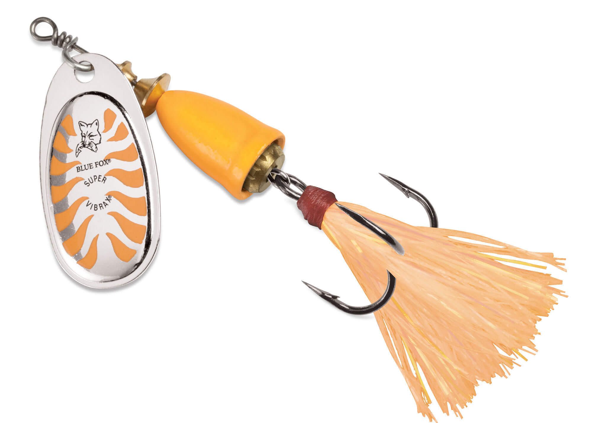Светящееся покрытие лепестка VIBRAX GLOW и кисточка ярких ниток создают дополнительную привлекательность для рыбы