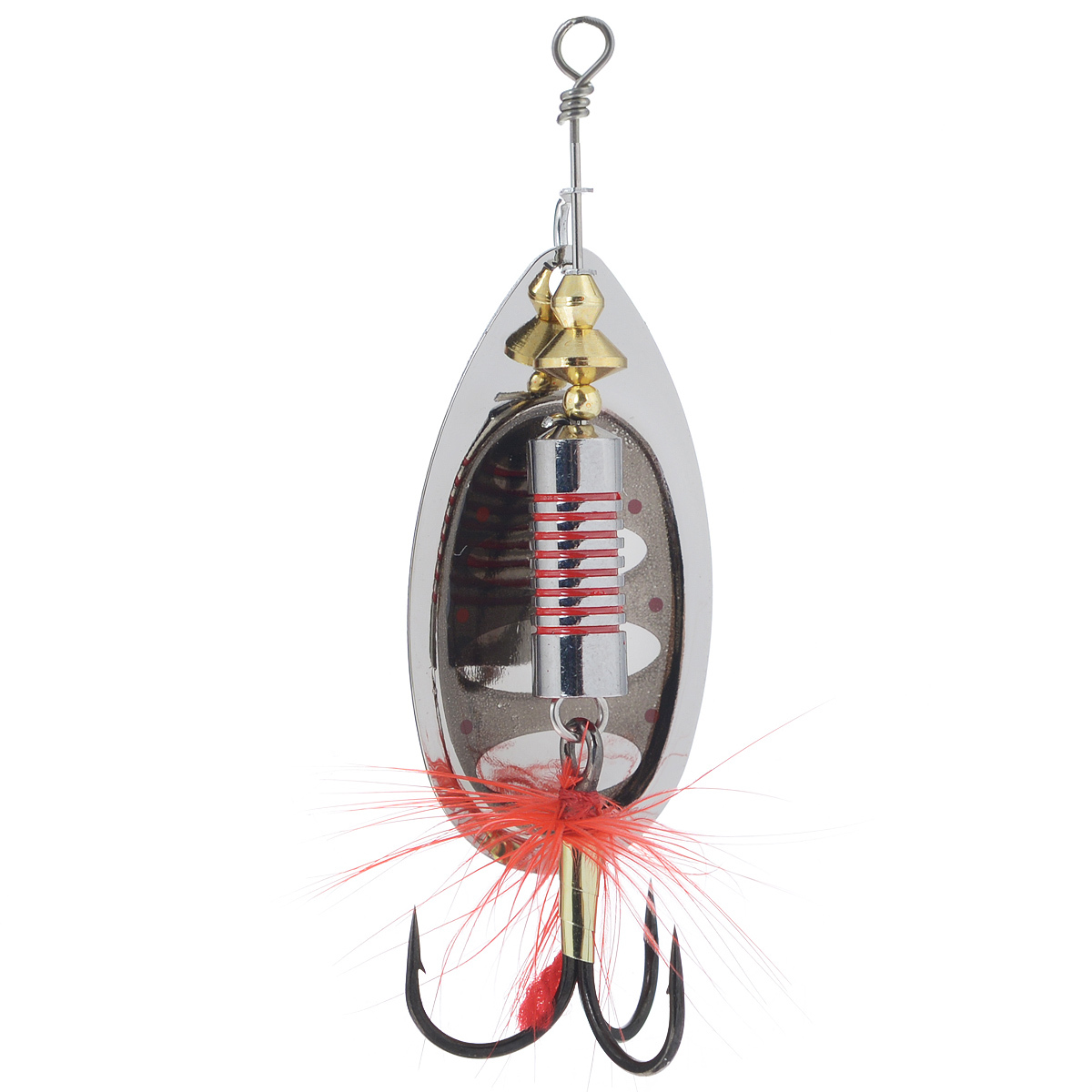 С какой бы стороны хищная рыба не смотрела на приманку, ее расцветка остается одинаковой и привлекательной, что повышает интерес к блесне и, в итоге, приводит к результативной атаке.