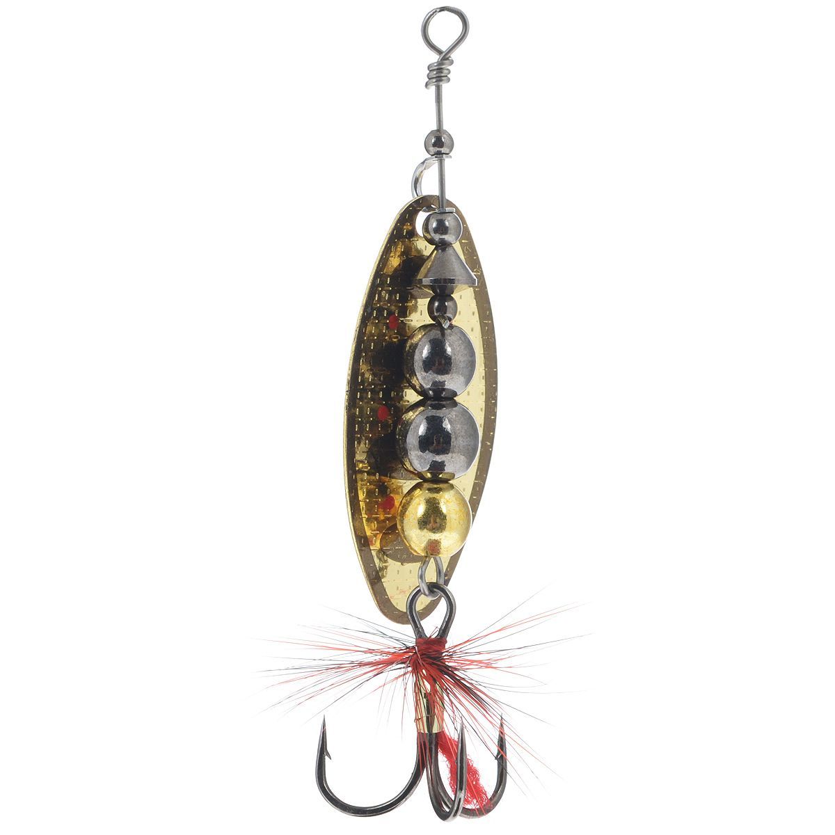 Главный элемент блесен-вращающейся лепесток. Он очень легок, сделан из латуни и обладает хорошими динамическими показателями при вращении в воде, что позволяет делать проводку приманки на минимальной скорости, что очень привлекательно для любой хищной рыбы. Лепесток включается в работу сразу, как только блесна начинает движение. Лепестки окрашены с двух сторон. Под каким бы углом хищная рыба не смотрела на приманку, ее расцветка остается одинаково привлекательной, что повышает интерес к блесне и, в итоге, приводит к результативной атаке.