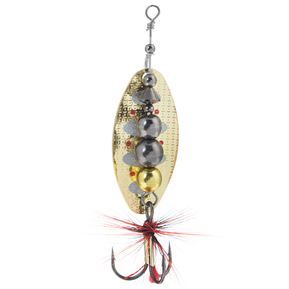 Главный элемент блесен-вращающейся лепесток. Он очень легок, сделан из латуни и обладает хорошими динамическими показателями при вращении в воде, что позволяет делать проводку приманки на минимальной скорости, что очень привлекательно для любой хищной рыбы. Лепесток включается в работу сразу, как только блесна начинает движение. Лепестки окрашены с двух сторон. Под каким бы углом хищная рыба не смотрела на приманку, ее расцветка остается одинаково привлекательной, что повышает интерес к блесне и, в итоге, приводит к результативной атаке.