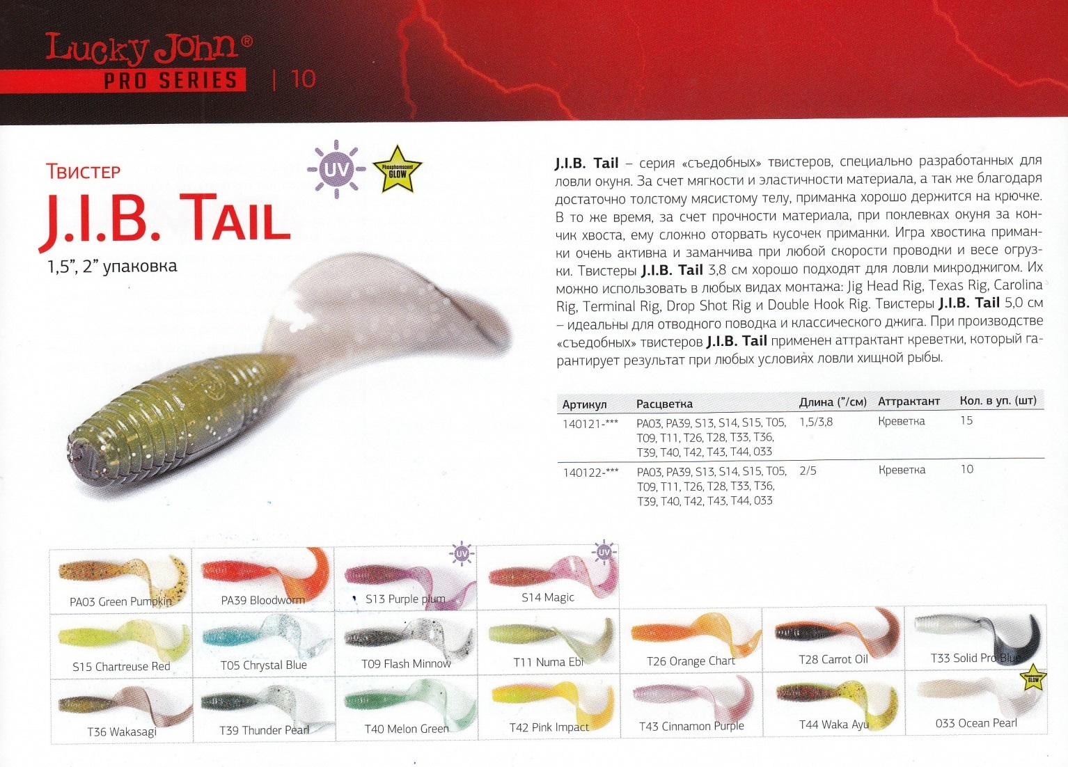 LUCKY JOHN Pro Series J.I.B. TAIL - серия «съедобных» твистеров, специально разработанных для ловли окуня.
