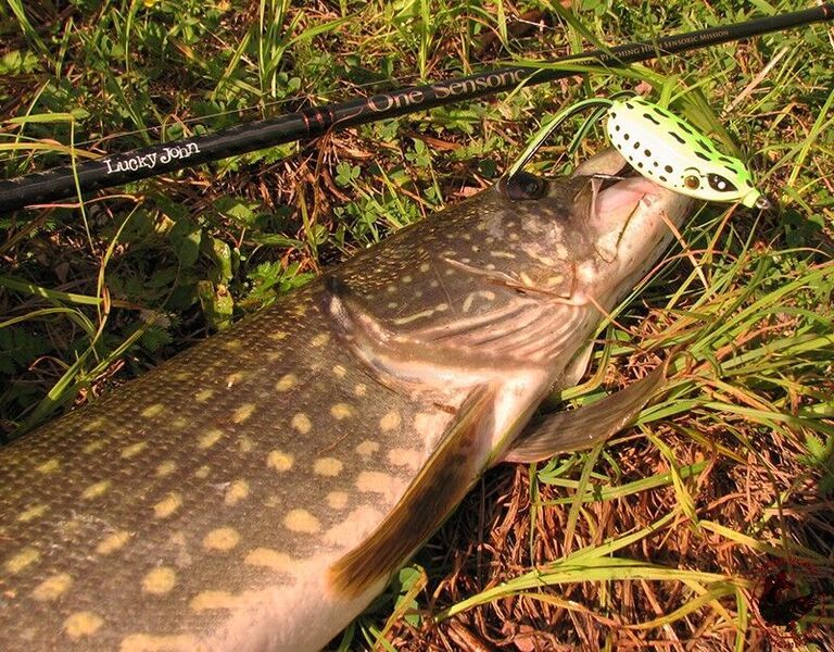 Поэтому действуем следующим образом - увидев, что щука фактически схватила лягушку, не стоит выдергивать приманку у нее из-под носа или из пасти, а напротив, надо ослабить шнур, выждать полторы-две секунды и только после этого сделать акцентированную подсечку.