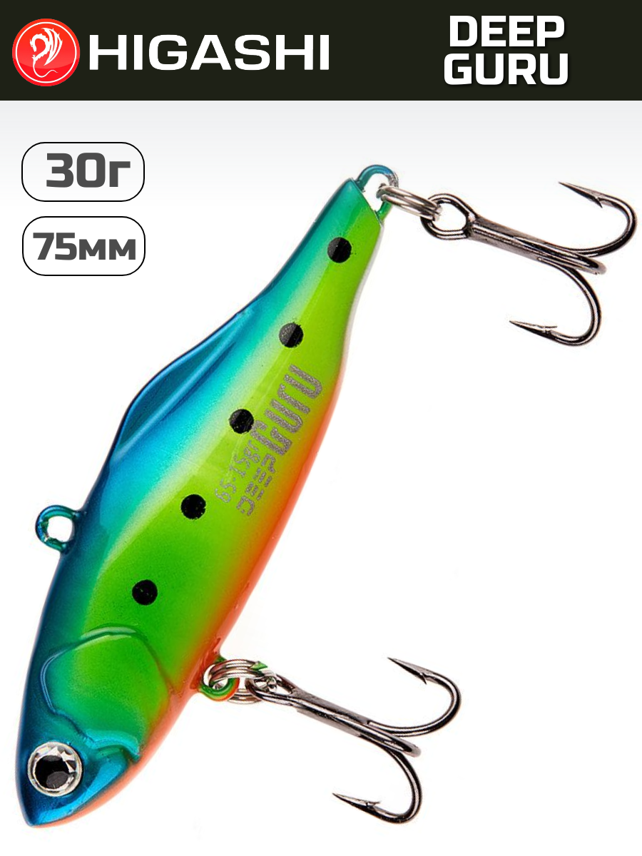 Раттлины Deep Guru от компании Хигаши это типичный представитель класса безлопастных воблеров с почти вертикальным погружением. Как и большинство представителей данного класса приманки от Higashi характеризуются отрицательной плавучестью. Серия Deep Guru специально разрабатывалась для ловли крупной щуки в условиях рек и озер Хабаровского края, но несмотря на это мы уверены в том, что она найдет свое применение и в других регионах России. Приманки являются всесезонными. Основное направление использования – ловля щуки, сома, судака, окуня.