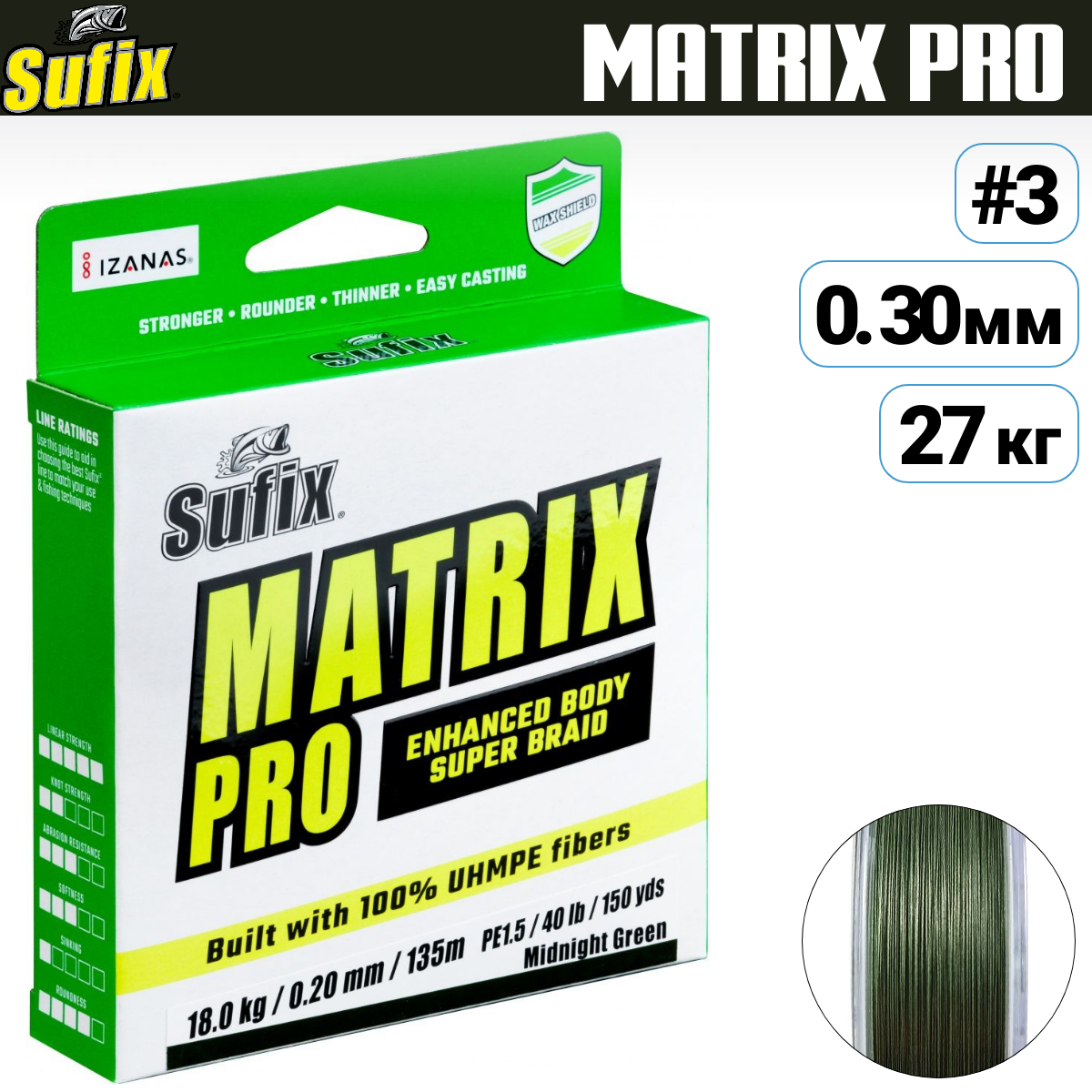 Шнур плетеный SUFIX Matrix Pro зеленая 135 м 0.30 мм