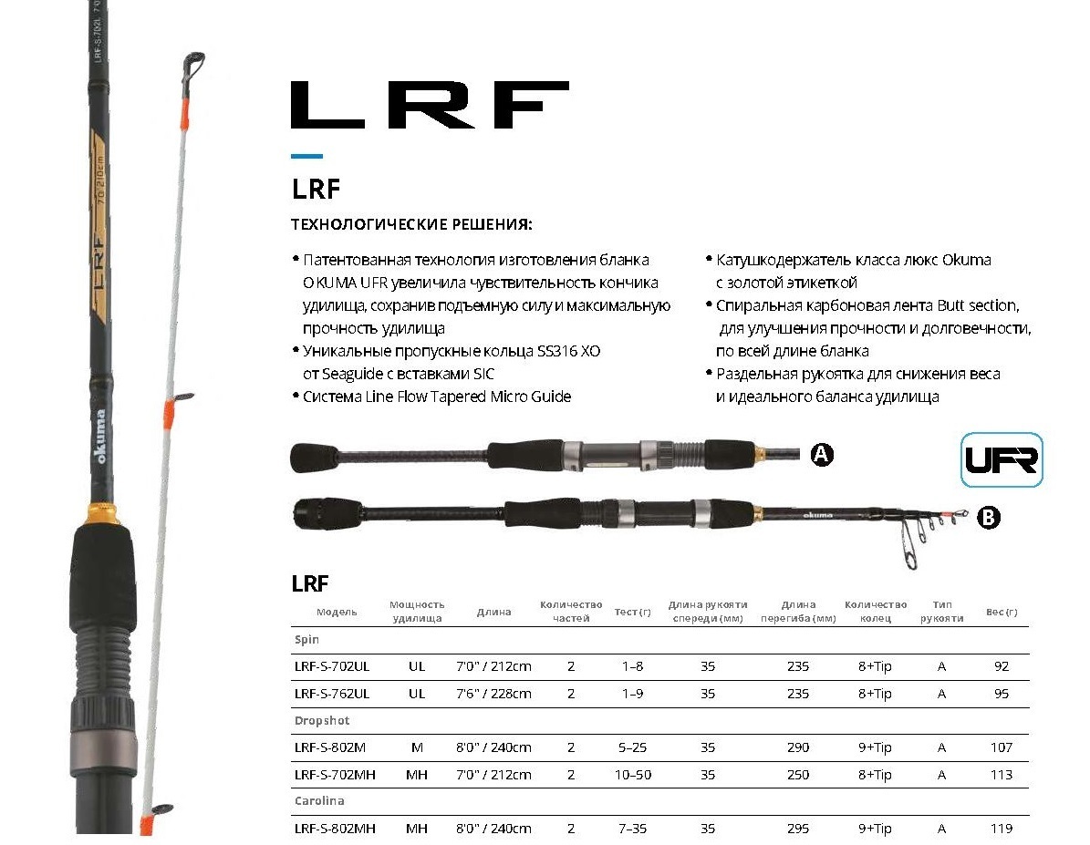 - Патентованная технология изготовления бланка OKUMA UFR увеличила чувствительность кончика удилища, сохранив подъемную силу и максимальную прочность удилища