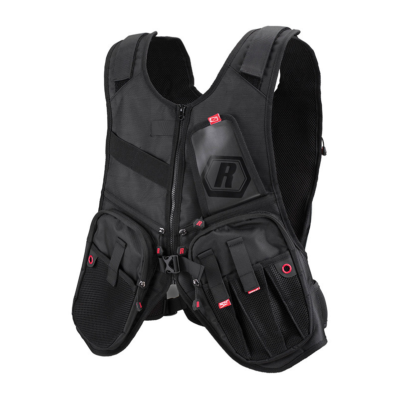Полнофункциональный разгрузочный жилет рыболова с интегрированным вместительным рюкзаком.